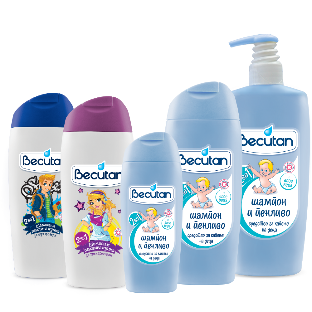 Becutan пенливото средство за капење е благо средство наменето за нега на нежната детска кожа. Се препорачува за употреба уште од самото раѓање. Темелно ја чисти и негува кожата, не иритира.