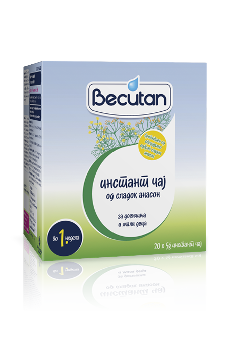 Приготвени од внимателно селектирани билки со потврден квалитет, Becutan инстант чаевите се достапни како мешавина од екстракт и етерично масло од плодот на анасон и лесно сварливи шеќери, сосема безбедна за конзумирање веднаш по првата недела од раѓањето. Се препорачува при нарушено варење на храната кај доенчиња и деца. Чајот го подобрува варењето, спречува создавање цревни гасови, го поттикнува нивното отстранување и ги смирува грчевите кои настануваат поради надуеност на цревата.